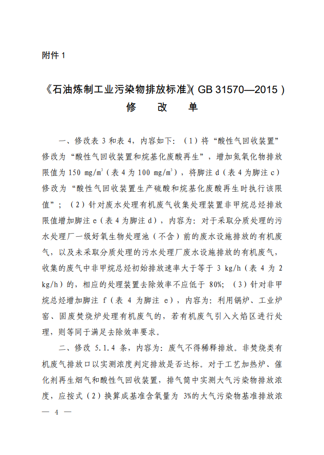 《石油炼制工业污染物排放标准》(GB 31570-2015)国家污染物排放标准修改单
